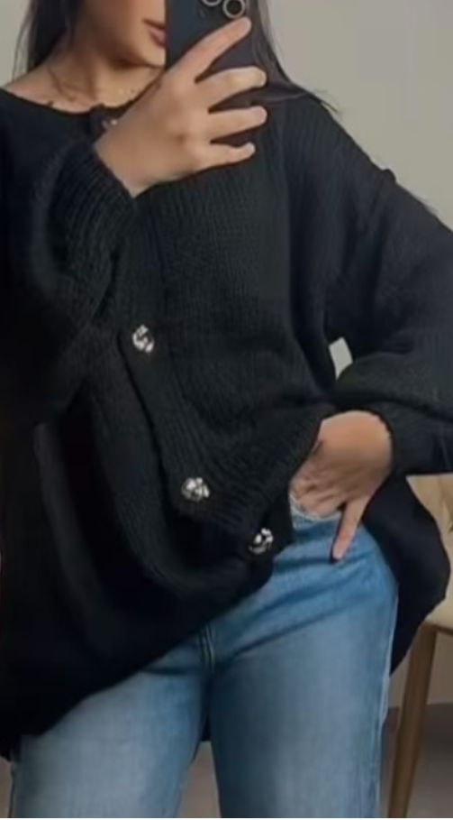 Ma douce et chaude, coupe, ample, bouton, bijoux, scintillant pour une touche élégante et féminine, très confortable à porter pour un look décontracté ou habillé.